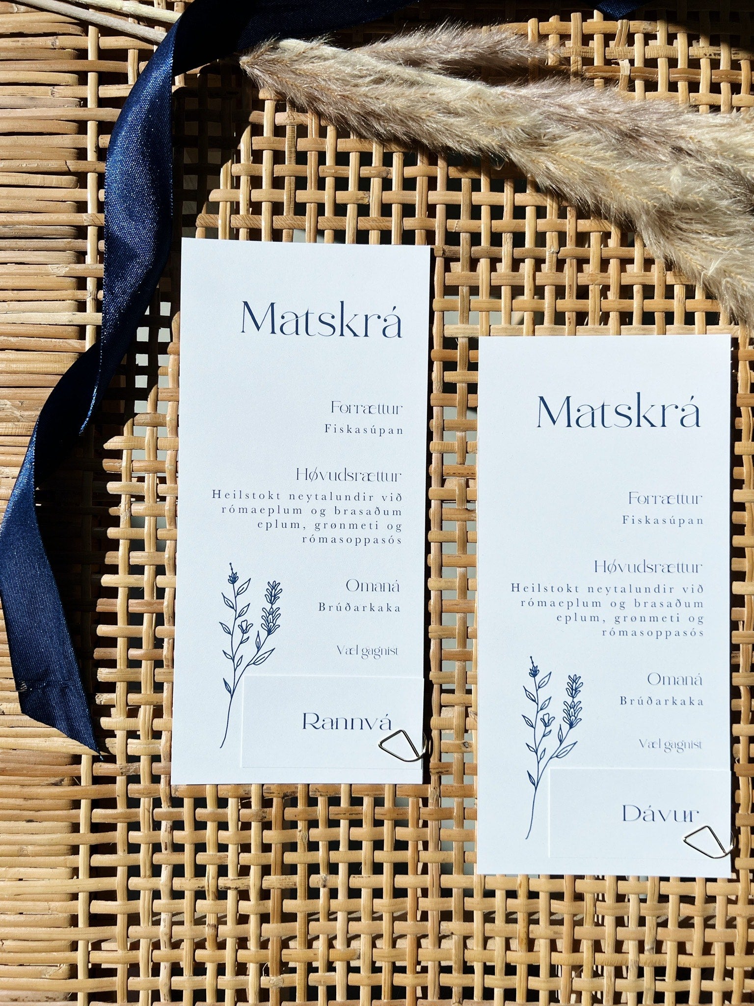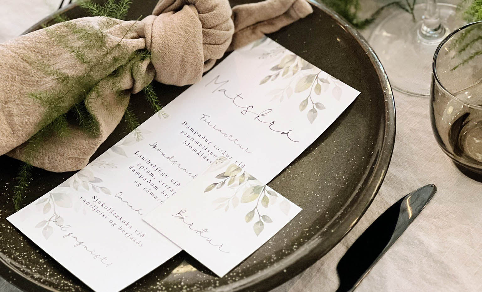 Vilt tú geva tínum gestum eina heildaruppliving, viðmæla vit at tú velur innbjóðing, matskrá, navnaskleti og sanghefti - alt í sama stíli og sniði, so at ein reyður tráður sæðst í veitsluni.