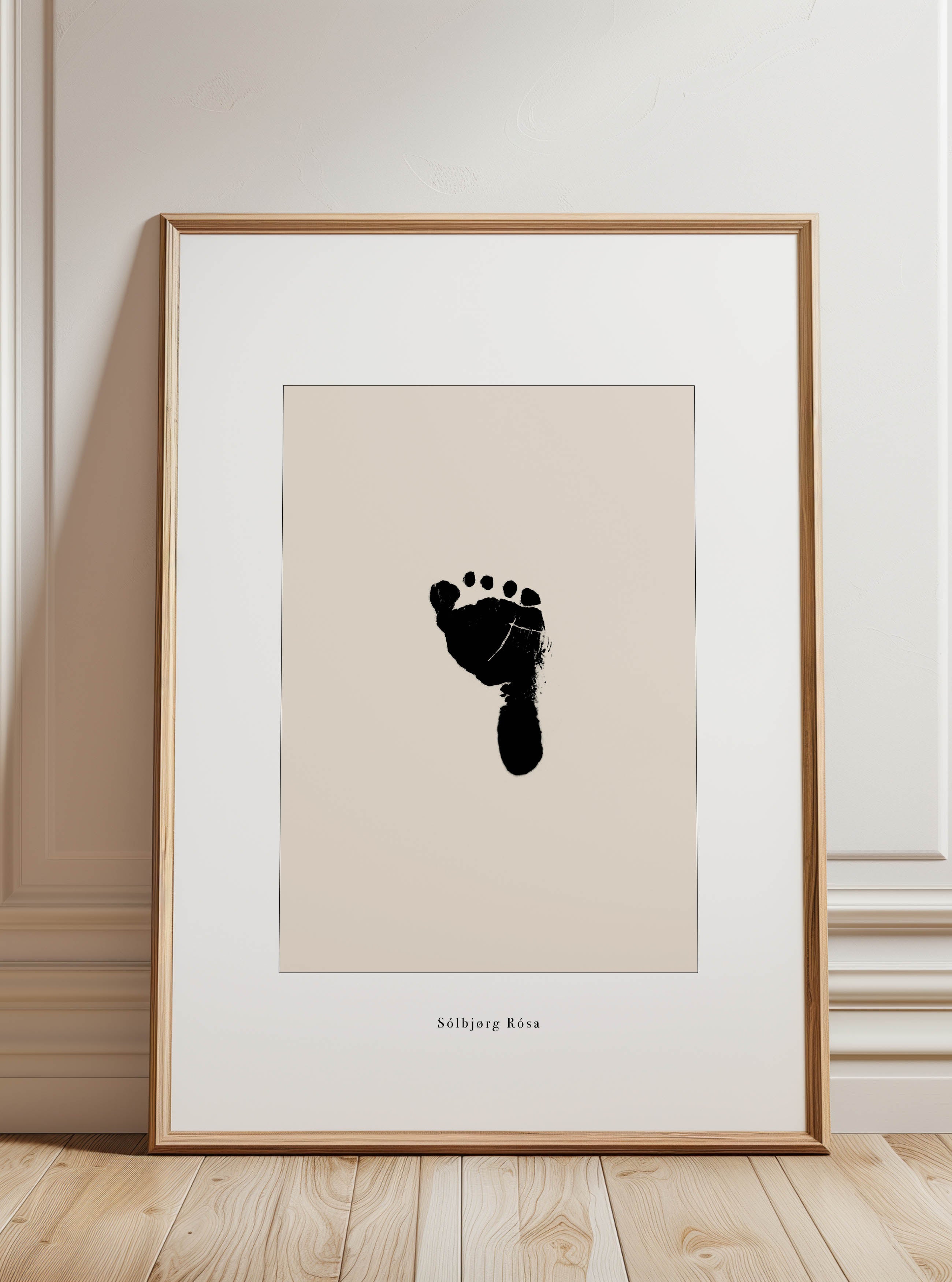 Tá eitt lítið barn verður føtt, verður eitt fótafar tikið á føðideildini – eitt lítið avprent, sum vísir fyrstu kontakt við heimin. Tað er tað fyrsta sporið, eitt nýtt lív setur – og tað hevur verið íblásturin til hesa persónligu og hjartanemandi plakatina.